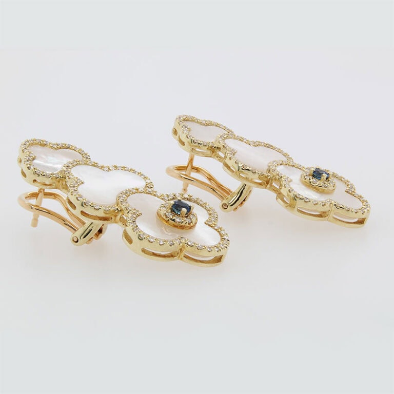 Sweet stud earrings take on a floral design with it’s diamonds perfect placed in a flower shape. Each earring contains six round-cut diamonds which total 1.20ct for the entire pair. The rest of the earrings are crafted out of 14kt white gold which beautifully compliments the white diamonds.