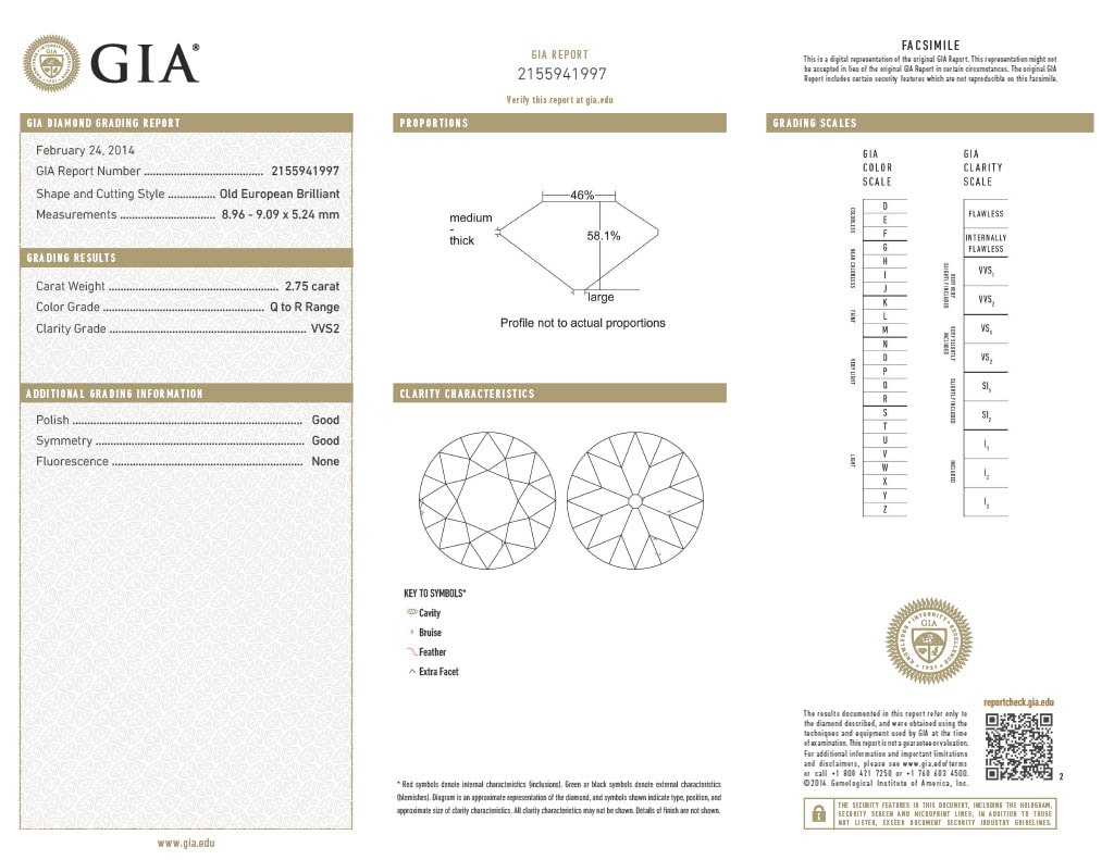 “The combination of the substantial 2.75ct size and VVS clarity in an antique European Brilliant cut makes this a truly investment-grade heirloom with a soulful glow you don’t see in modern cuts.”