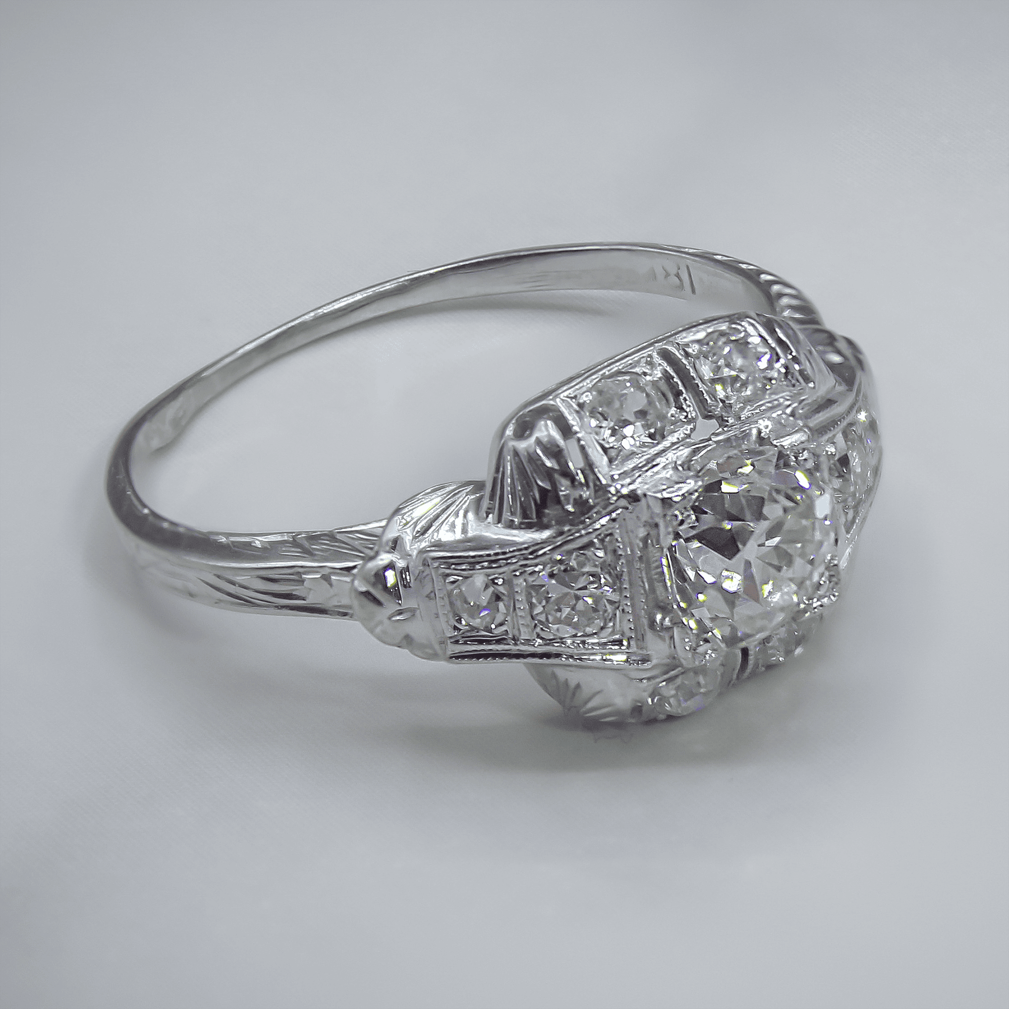Discover a GIA-certified Old European cut diamond set in an intricate Art Deco platinum mounting. A rare vintage treasure. Shop Lilliane’s Estate Collection.
