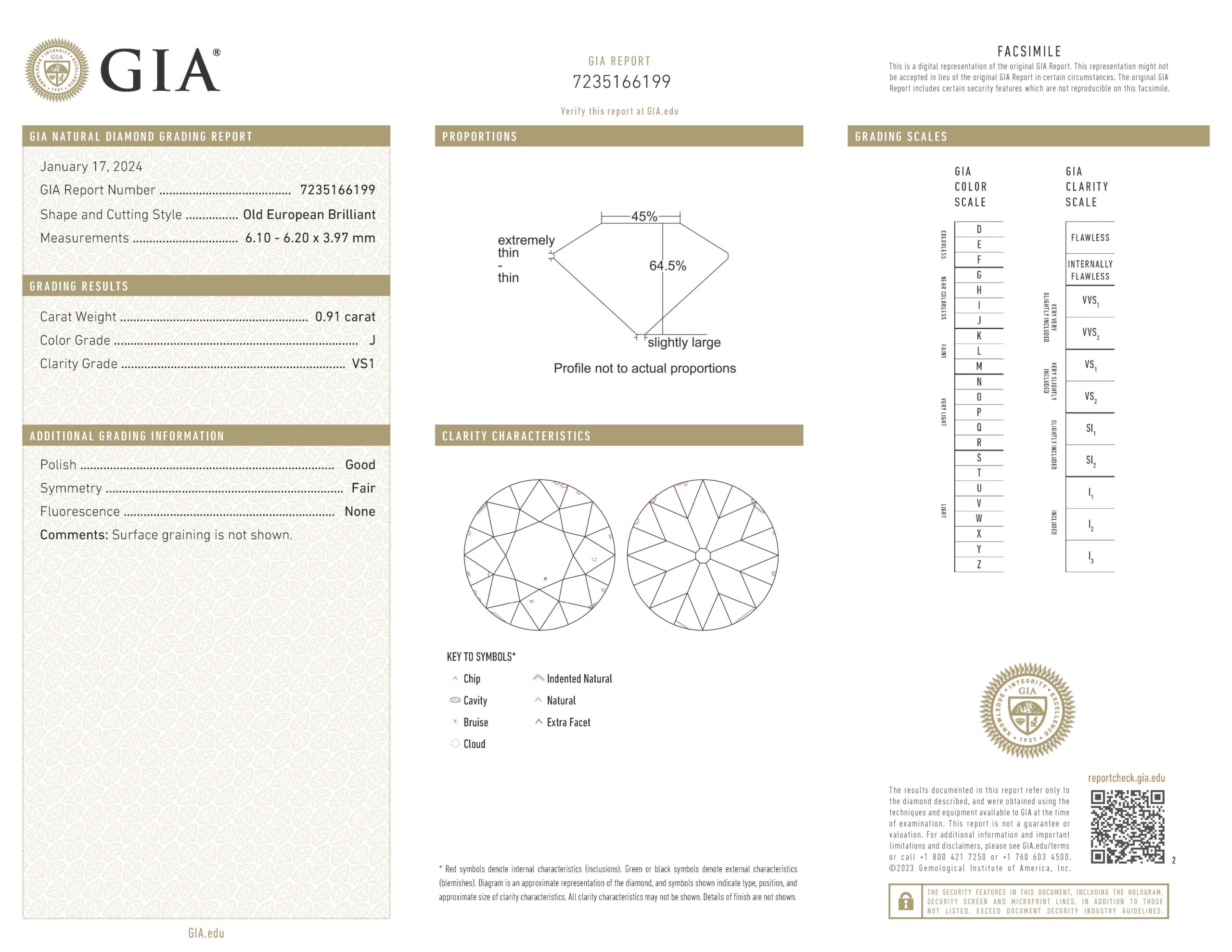 Primary Gemstone: GIA Certified Natural Old European Cut Diamond (0.91ct)